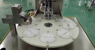 星火生物制劑鋁箔封口機采用氣動式間隙運轉方式,電器采用可編程邏輯控制器,具有自動落杯、灌裝、色標定位、單道熱封、齒形切刀、自動對芯切邊及廢膜回收等功能。本機采用智能數字顯示溫度控制系統控制封口溫度,溫度誤差小于±1%。封口強度高,密封性好。整機采用德國可編程邏輯控制系統,機身采用不銹鋼設計,符合相關食品衛生標準。設備的執行零部件采用氣動控制系統,簡化了機械結構,封口質量極佳,大大地提高了設備的生產效率和使用壽命。